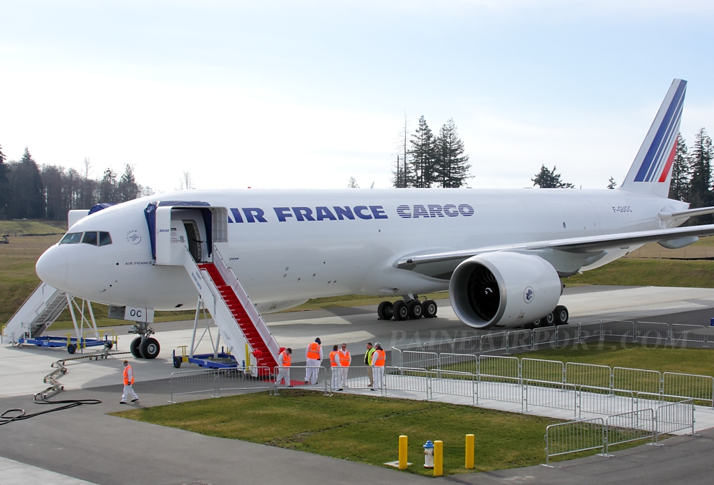 Le 777 Cargo (777F) a une autonomie de 4880 milles nautiques (9038 km) à pleine charge, c’est à dire 103 tonnes métriques. Le nouvel appareil est destiné a remplacé progressivement les 747-400 Boeing Converted Freighter (BCF) au sein de la flotte d’Air France Cargo. Air France Cargo opère actuellement 4 747-400ER Cargo et 5 747-400BCF. Air France est également le premier opérateur de 747-400ER Cargo.